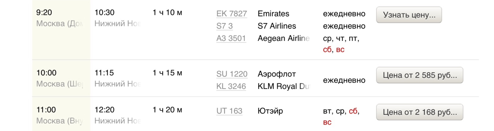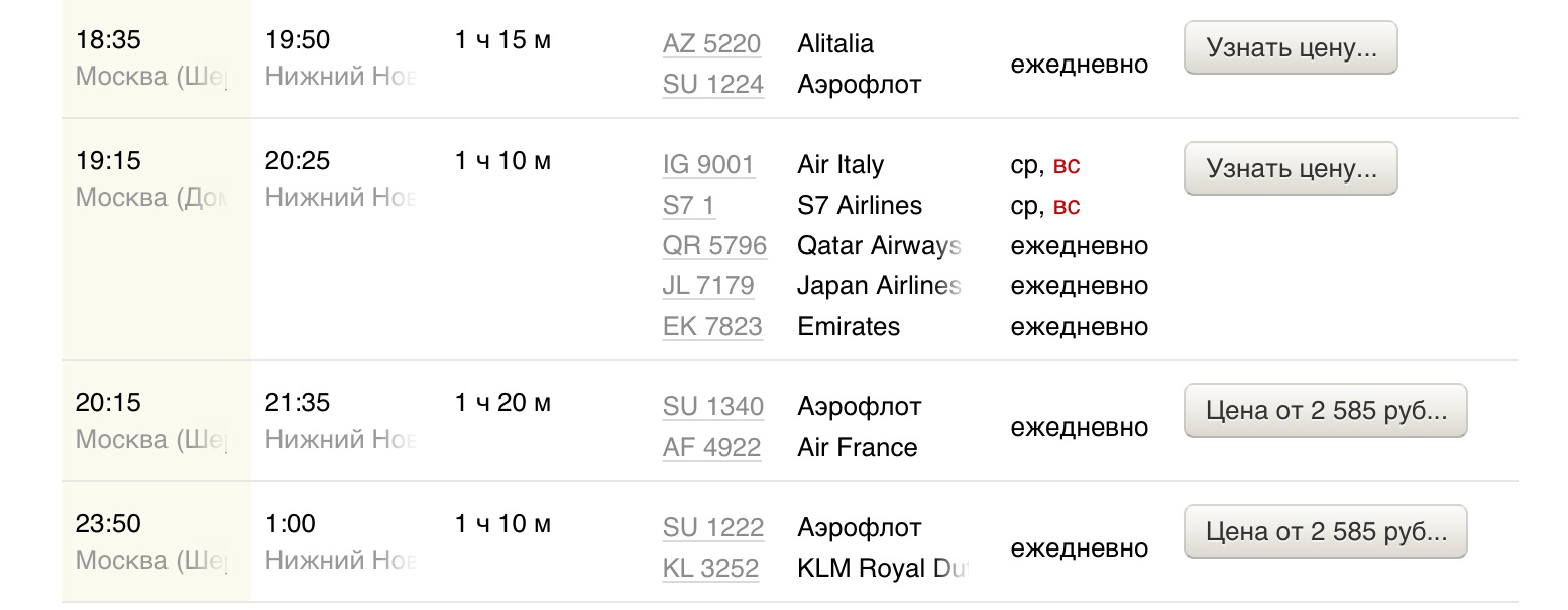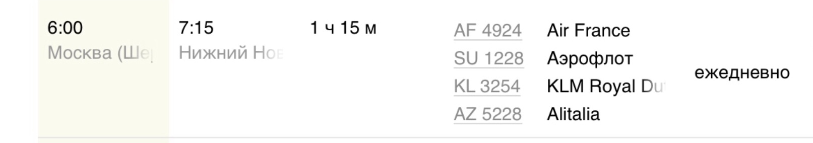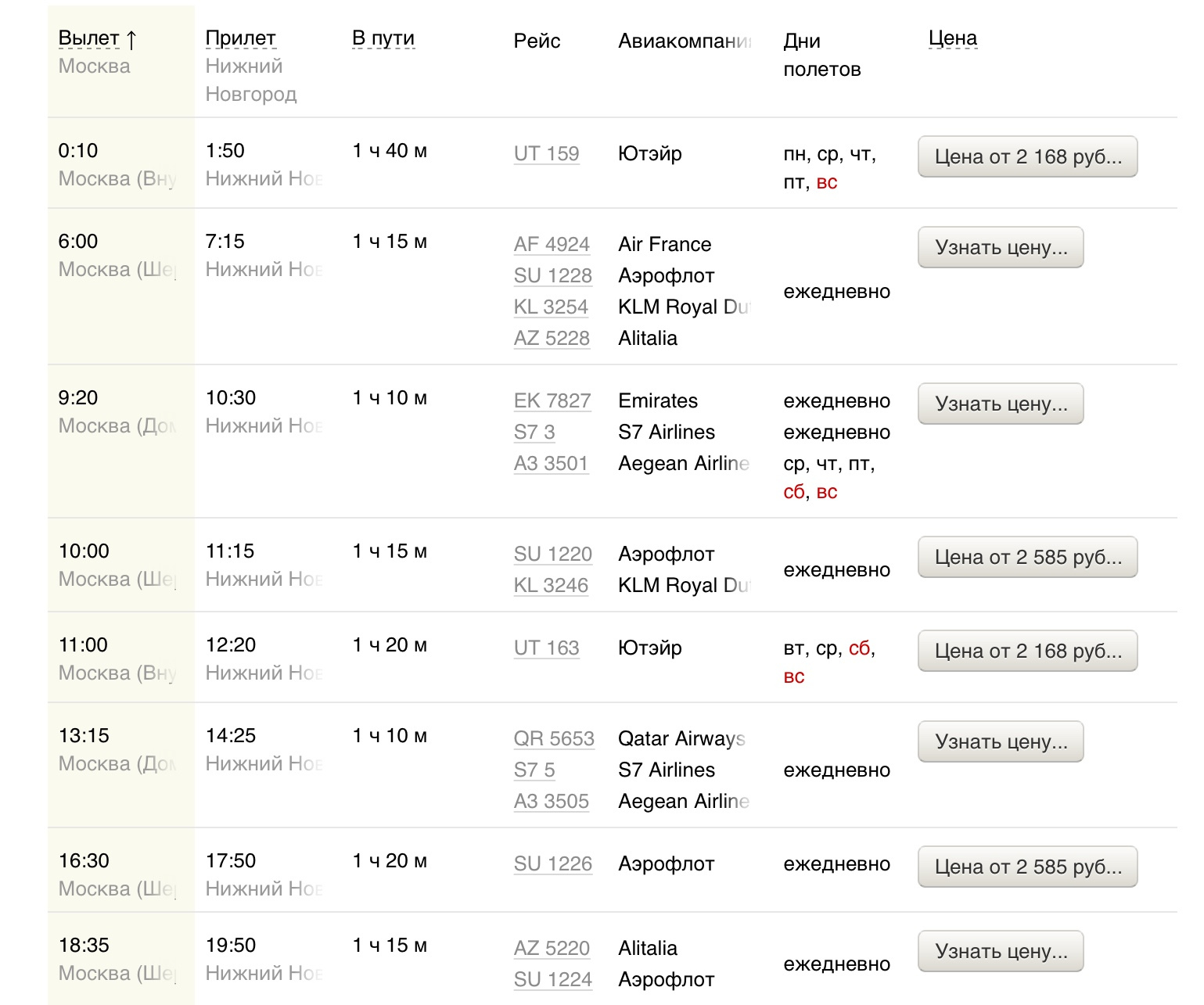 в 20:45 в пути 8 ч 45 м прибытие 6:00 (пятница)