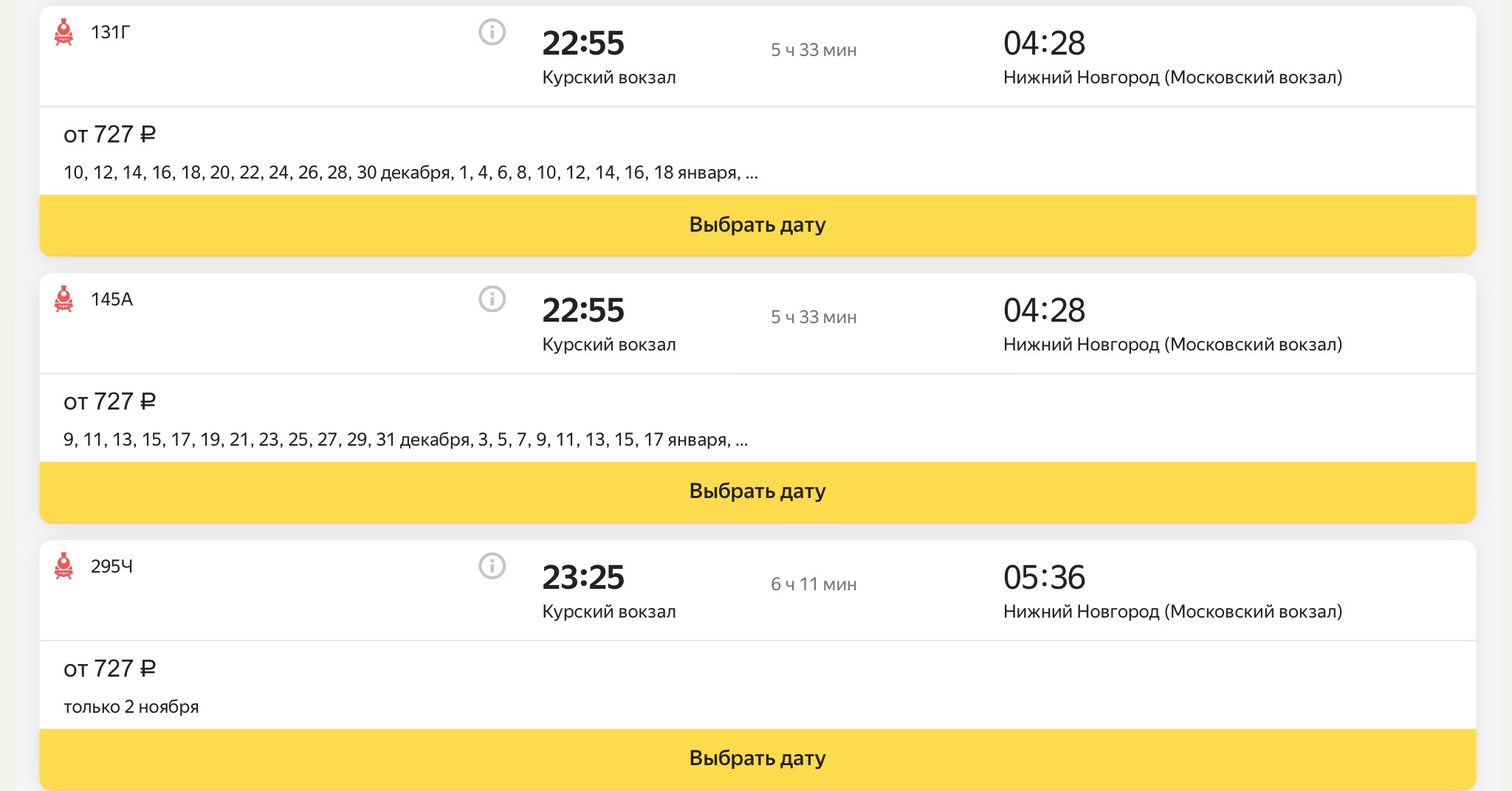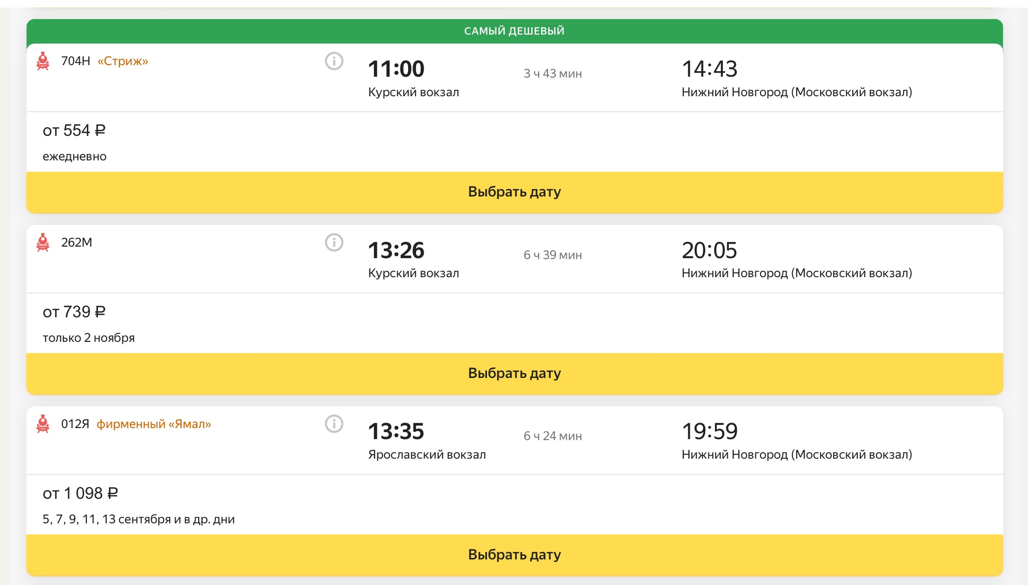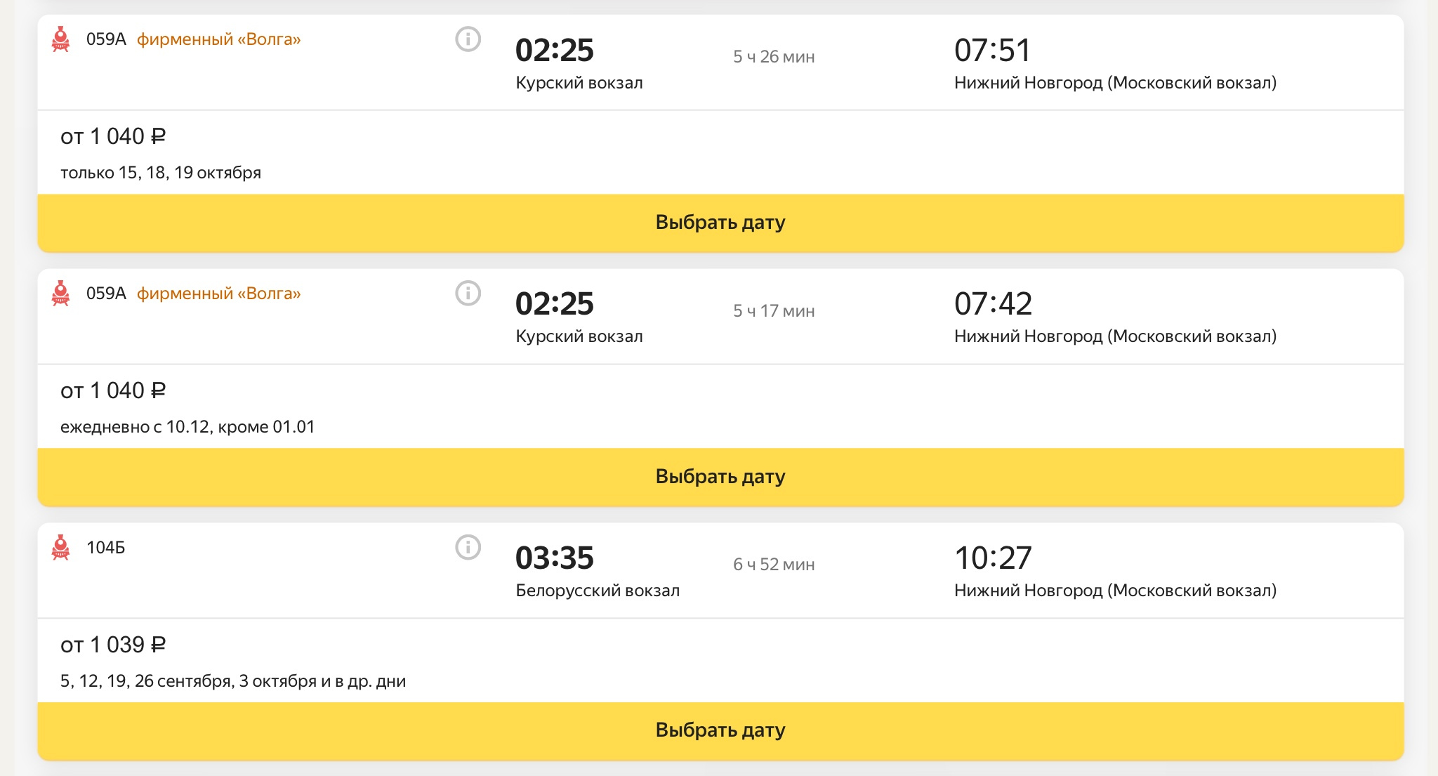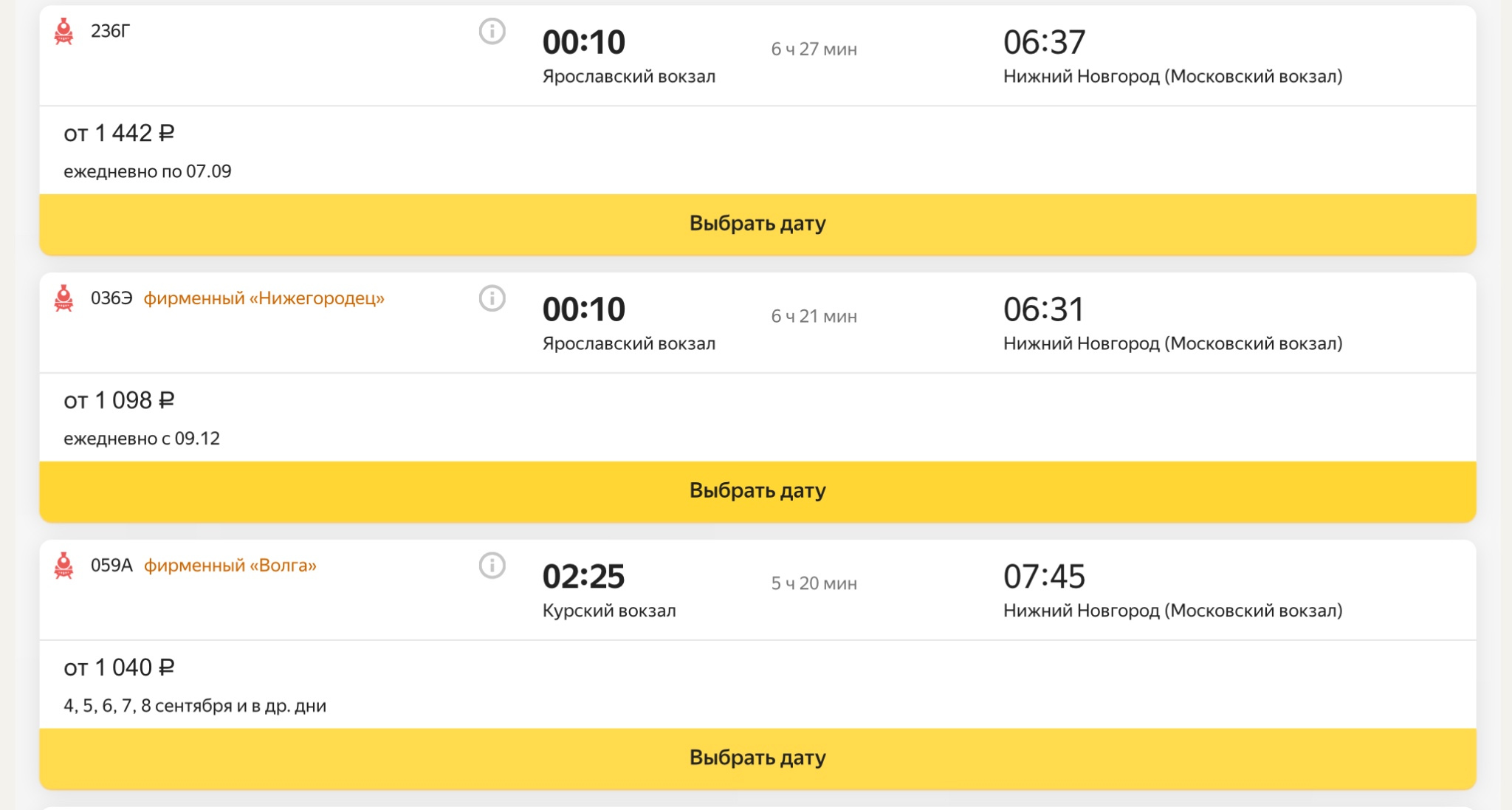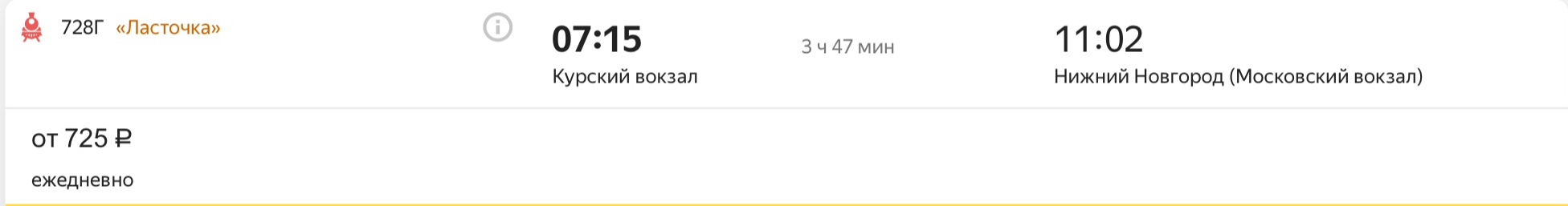 доехать до Нижнего Новгорода поездом.