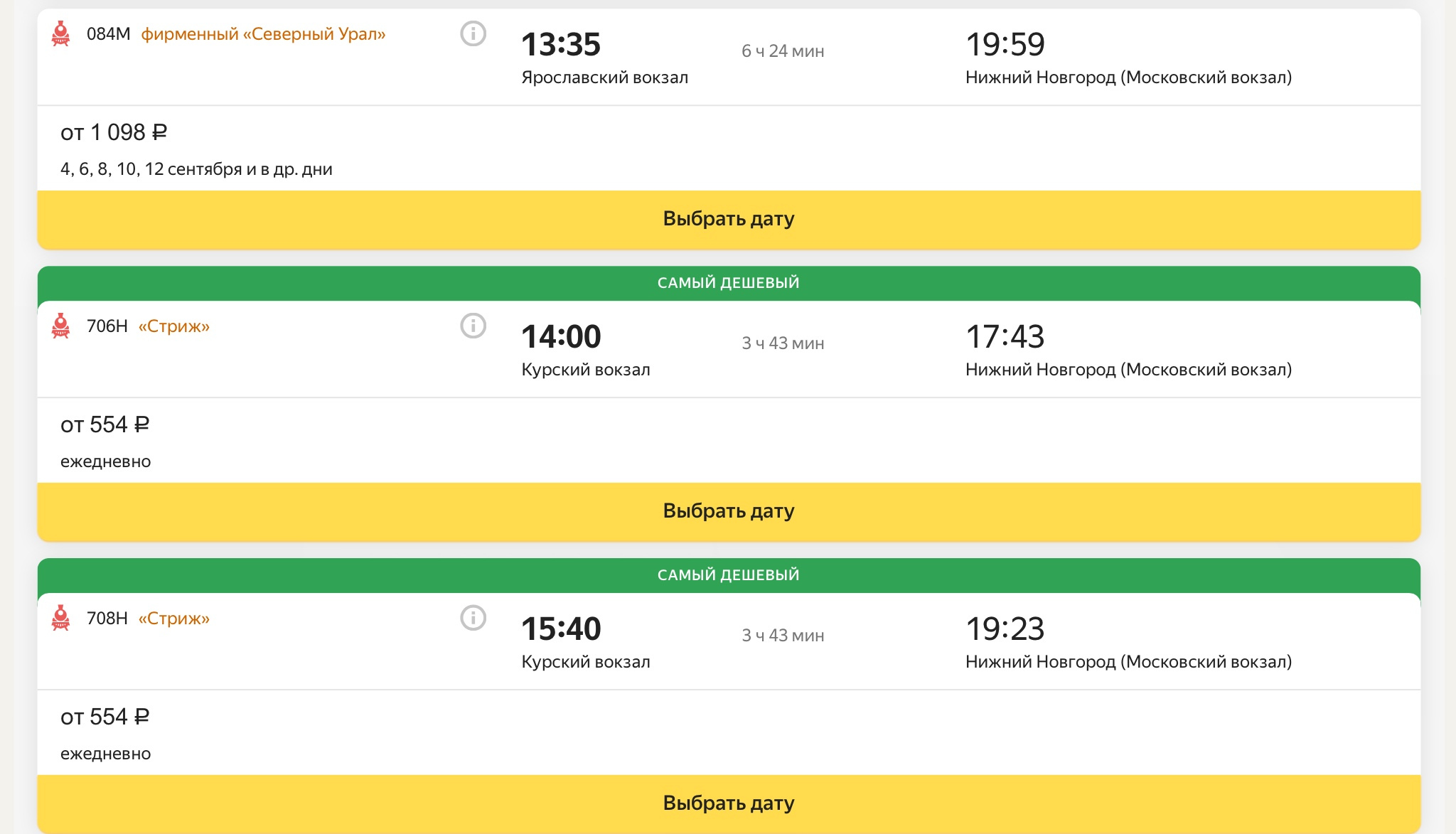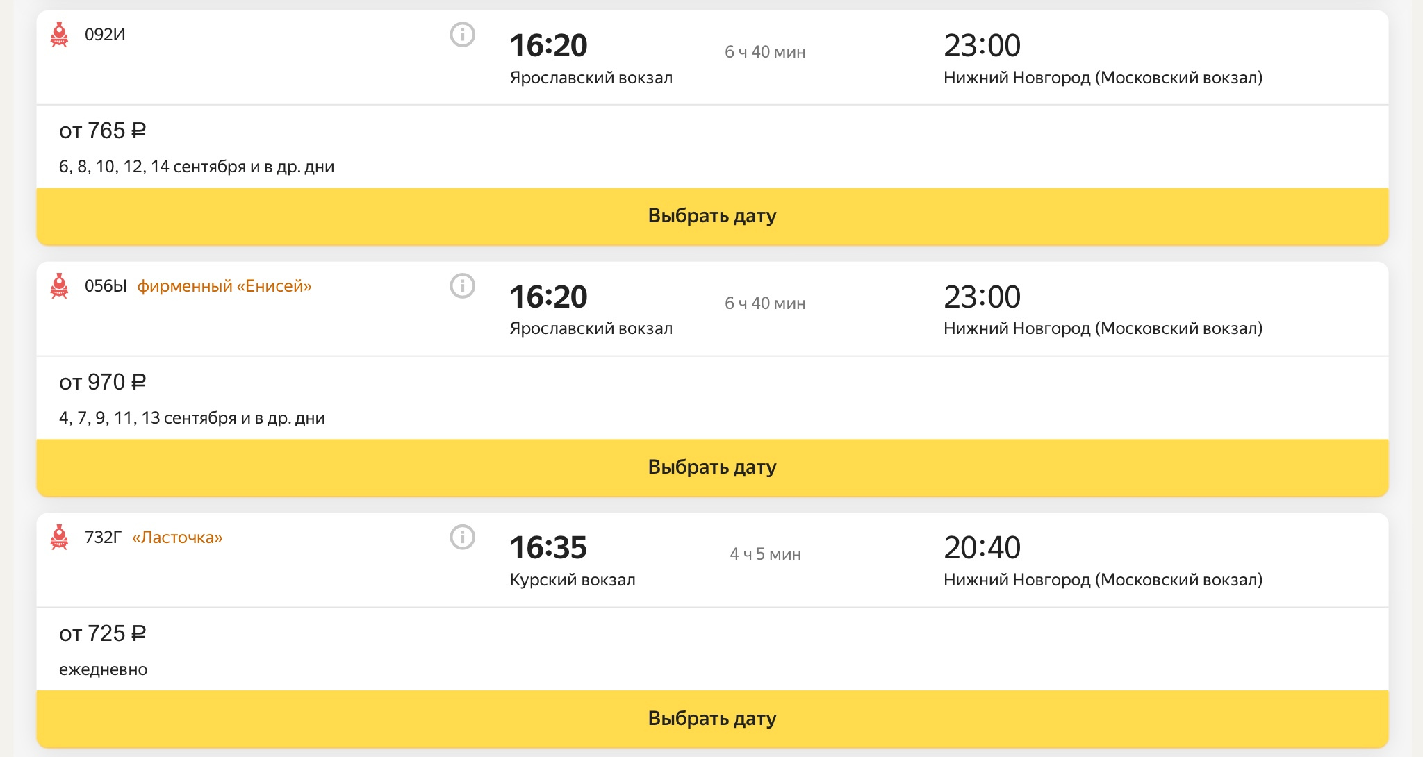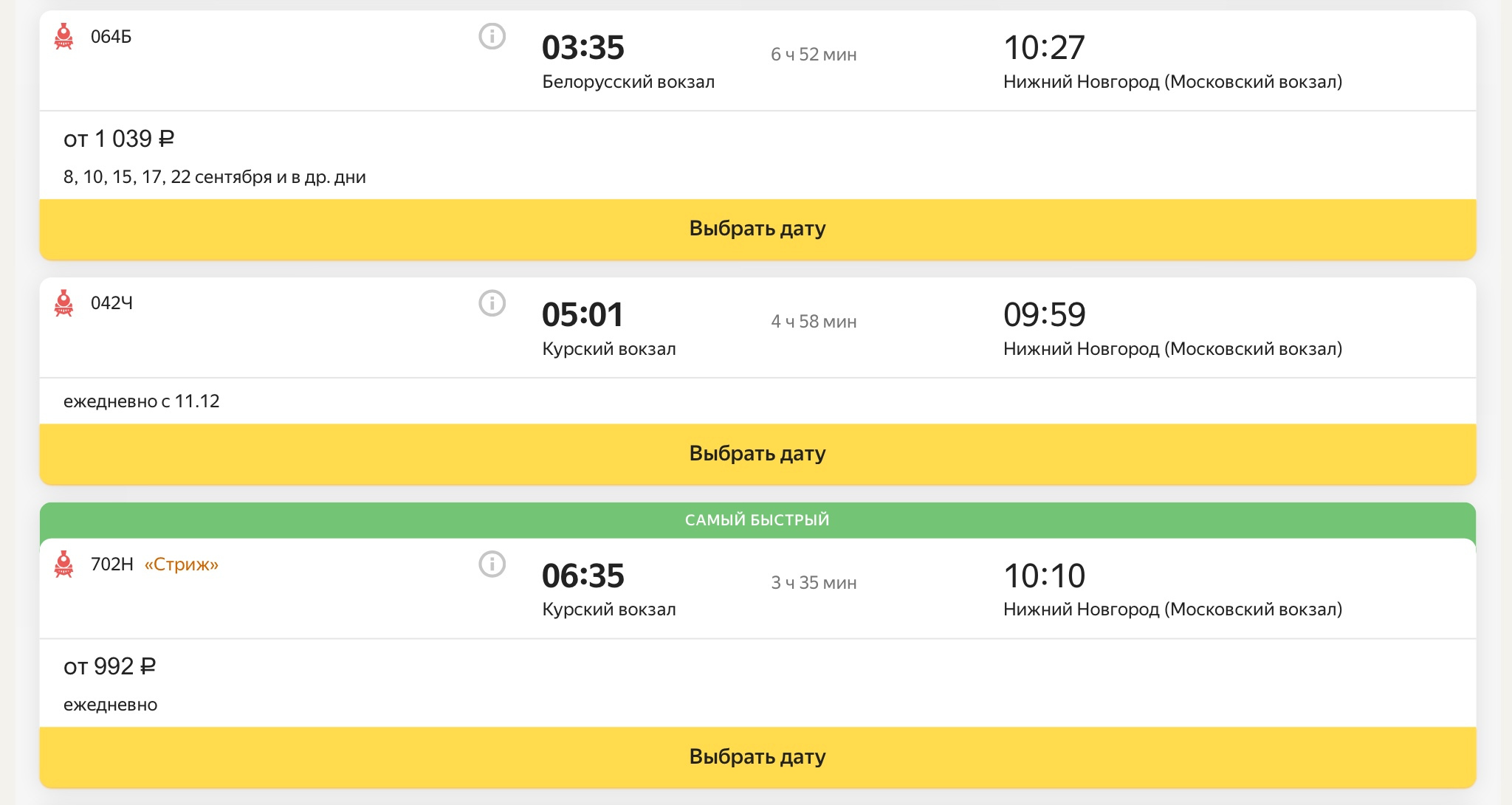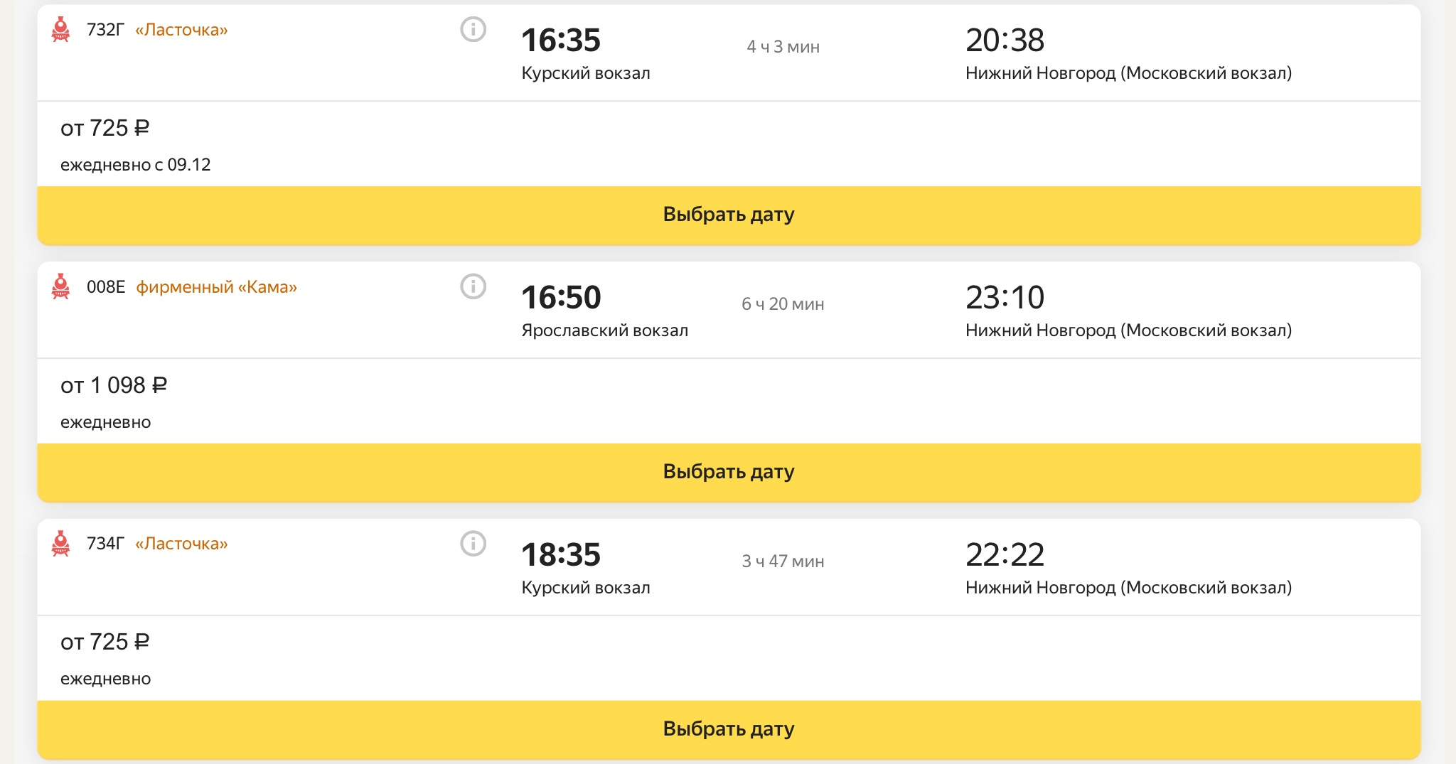 доехать до Нижнего Новгорода поездом.